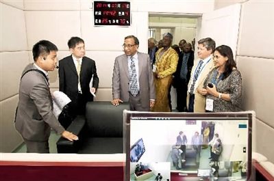 7月17日,参加国际反贪局联合会2014年第二期研讨班的代表参观天津市检察院办案工作区。记者程丁摄